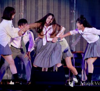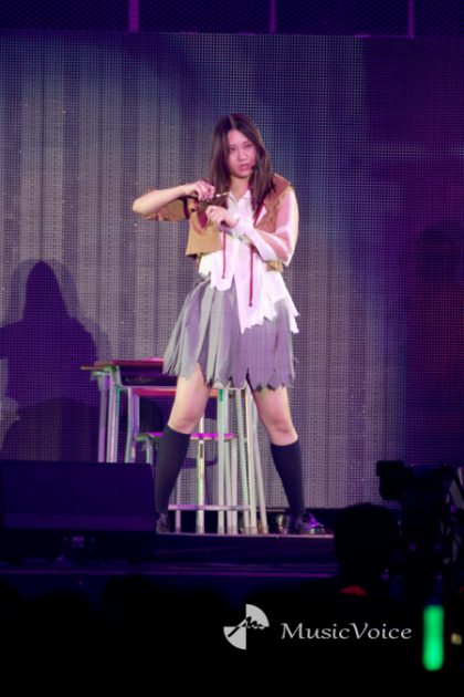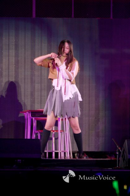 ステージ中央には、学校の教室のセットが組まれ、そこで古畑はクラスメイトからいじめを受ける。ごみ箱のごみを頭からかぶらせたり、制服を切られたり。クラスメイトにいじめを受けるという寸劇をライブパフォーマンスに組み込んでおり、その迫真の演技と歌唱で表現するその世界観に観客は息を呑んでいた。