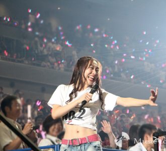 その後は、16位から順にソロ曲が披露。それぞれが自ら企画、演出したパフォーマンスで観客を沸かせるなかで、最後に登場したのは須田亜香里。スクリーンには「ブサかっこいいを目指します」という文字が。披露した楽曲は、今人気を集めているDA PUMPの「U.S.A.」ならぬ「B.U.S.A.」だった。