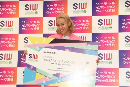 歌手でタレントのりゅうちぇる(歌手名義=RYUCHELL)が、渋谷ダイバーシティエバンジェリストに任命。その任命式が8日、東京・青山学院大学でおこなわれ、長谷部健・渋谷区長から任命パネルを受け取った。