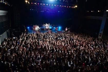 ゆうやが叩き出す猛烈な2ビート、明希の重くうねるベース、Shinjiの高速ギターリフに乗ってマオが叫ぶ。8月に出た新作ミニアルバム『いちばん好きな場所』の1曲目を飾った「VOICE」は、生で聴くとよりエモく激しく、サビで一気に空間が広がる感触がたまらなく気持ちいい。同じく新作からの「reverb」は、エレクトロ・サウンドを大胆に取り込んだヘヴィなメタリック・ダンスロックで、前作『NOMAD』収録のメタルチューン「XYZ」と並べて聴くと、興奮が倍増する。「頭からぶっ飛ばしていくぞ!」と叫び、マオが客席最前列に両足を突っ込んで歌っている。差し出された何本もの腕でマオが宙に浮いているような、その光景が一枚の美しい画に見える。