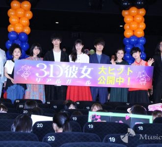 映画『3D彼女 リアルガール』公開記念舞台挨拶が15日、東京・新宿でおこなわれ、中条あやみ、佐野勇斗、清水尋也、恒松祐里、上白石萌歌、ゆうたろう、濱田マリ、竹内力、そして英勉監督が登壇。役者陣からサプライズで監督に感謝の言葉を贈る場面があった。