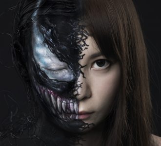 今回のメイクについて今回のメイクについてJIRO氏は「ヴェノムと中川さんの骨格は違うのでバランスよく描くことを意識しました。中川さんの骨格を殺さないといけないところと、表面を立体感を含めた艶を表現するのが難しかったです」と約8時間にも及ぶ制作過程を振り返った。