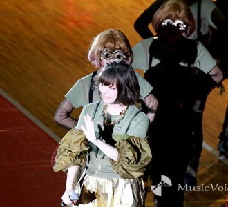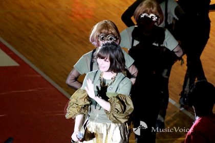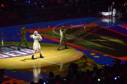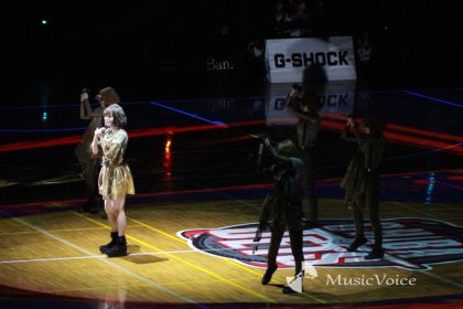 大胆なフロアプロジェクションマッピングが演出されたコートの上できゃりーは、キュートな振付とともに同曲を歌い上げた。