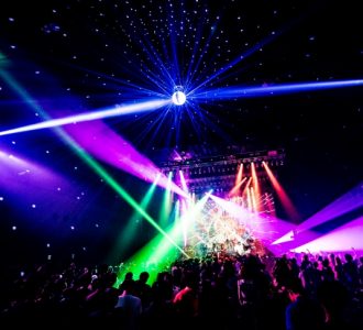 続いてはYUSURAによる和太鼓との共演が印象的な「PHOENIX~HINOTORI~」。不死鳥のごとく何度でも蘇ってくるような力強いサウンドで、我々の体を揺さぶりかける生命力に満ちた音を届けてくれた。本編ラストは「DO-FUNK DANCE」。ダンサブルなリズムに乗って、ソリッドでグルーヴィーなギターカッティングが心地よいナンバー。天井に設置されたミラーボールが美しい光を放ちながら回転、視覚的にも楽曲を盛り立て現実を忘れさせてくれるかのような空間。さらにYUSURAがギターを持って颯爽と登場し、SUGIZOとのツインギターで魅了。オーディエンスもグルーヴに身を任せ、高らかに腕を掲げボルテージは最高潮のなか本編を終了した。
