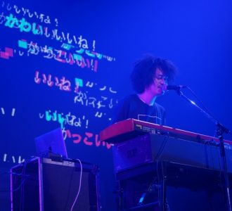 全てのファイナリストのパフォーマンスが終了し、集計結果を待つ間にスペシャルゲストのOpen Reel Ensembleによるステージ。和田永、吉田悠、吉田匡の3人がオープンリール式テープレコーダーを利用し楽器のように奏でるという特異な存在感を放つグループだ。オープンリールをDJのようにスクラッチしたり、竹の竿でテープを釣りをするかのようにデッキのヘッドにこすりつけ弦楽器のようなサウンド、シンセとレコーダーを使用したオープンリールオルガン、極めつけはレコーダーから伸ばし張ったテープをスティックで叩きドラムにしてしまうという奇想天外なアイデアで楽しませた。ライブならではのオーディエンスの声をその場でサンプリングし、楽曲に組み込むというパフォーマンスも相まって会場が一体となったステージングで魅了。最後の「Space Fushigi#2」では司会の平井をステージに招き、レコーダーでスクラッチを要求。不安そうな面持ちの平井だったが、見事なスクラッチを決め、華を添えた。