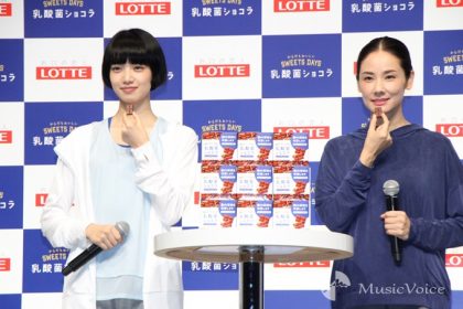 女優の小松菜奈と吉田羊が17日、都内でおこなわれた、ロッテ「乳酸菌ショコラ」の『1日3分 腸内環境改善トレーニング』発表会に登場、健康を気遣った普段のトレーニングライフの様子を語った。