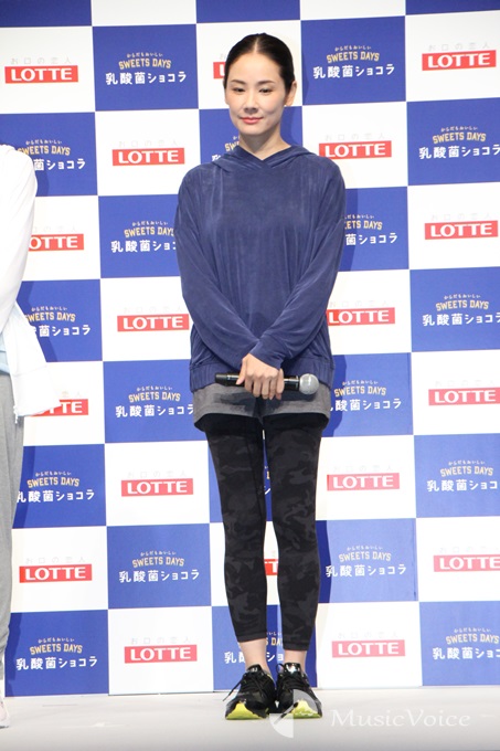 - 「腸内環境改善トレーニング」でもも上げに挑戦する小松菜奈。「私、リズム感が無いんですよね…」と自信なさげ