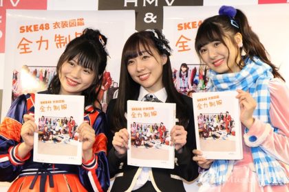 本誌は、昨年3月に発売された『AKB48 衣装図鑑 放課後のクローゼット~あのころ、彼女がいたら~』のSKE48版で、SKE48のデビュー極「強き者よ」から最新シングル「いきなりパンチライン」まて、全23枚のシングル曲とカップリング曲、および劇場公演などの衣装を掲載した「衣装図鑑」。トルソー着用による撮影で、ディテールまで詳細に紹介しており、SKE48の10年間の歴史を、衣装と共に振り返ることができる。この日3人は誌面にも掲載されている衣装で登場、SKE48の衣装の特徴や衣装制作秘話などを語った。