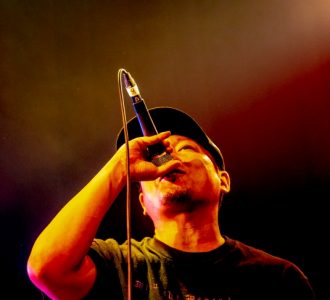「(この日集まった)3組の意味がわかってもらえるか正直不安でした。でも、みんなの楽しんでいる姿を見て、『渦:渦』をやって良かったと思った。色んな音楽があるし、音楽以外にも映画やファッションとか色々面白いものがある。そんなものに目を向けて欲しいなと思って、俺の好きな人達を呼んで(イベントを)やらせてもらいました。自分の好きなものを押し通すのはすごく勇気がいることだと思うけど、俺は自分の好きなことは曲げないというのが一番大切だと思っています」と思いを告げ、岩渕のフリースタイルラップから新曲の「くだら nation」を披露。この世の中に蔓延する出来事への、皮肉を目一杯込めた岩渕らしさ全開の歌詞と、それを後押しするパワフルな演奏で会場を席巻していった。