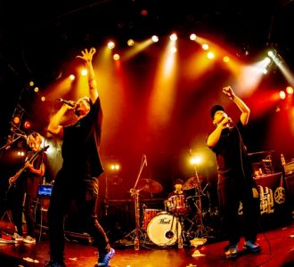 2組目はミクスチャーロックバンドの山嵐が登場。結成22年というベテランバンドがどのようなステージを見せてくれるのか期待が高まるなか、7人がステージに登場。会場を揺らすほどの武史(Ba)によるベースの低音が鳴り響き、自己紹介ナンバーともいえる「山嵐」でステージの幕は開けた。ダイナミックなYOSHIAKI ISHII(Dr)のドラムとKAZI(Gt)とYUYA OGAWA(Gt)のヘヴィなツインギター、そこに広がりを与えるKAI_SHiNE(Maschine)のSEと、多彩なロックサウンドでアグレッシブに攻めてくる。「自分たちなりに全力でやっていくのでついてきて下さい」と、オーディエンスに投げかけ「パカパカ」に突入。KOJIMA(Vo)とSATOSHI(Vo)の息の合ったツインボーカルによるスリリングな絡み合いが、感情を揺さぶりかけてきた。