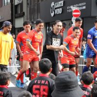 プレー後は「(高校時代、)僕らがプレーしていた頃は、ボールが皮だったんですね。だからゴムのボールは新鮮でしたし、お2人がすごく優しかった」と晴れやかな表情。元々中学校時代は男らしいものに憧れ、空手道部に入りたかったが、部そのものがなかったため、その他の「男らしい」部活を求めた結果ラグビー部に入部、以後ダンスに目覚めるまで競技を続けたという。この日チームメイトとなった金選手は「鮮やかというか、フットワーク、身のこなしが軽くて、本当に40年ぶりかと疑っちゃうようでした」とビックリ。