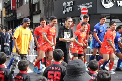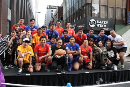 また、この日はSAMがプロデュース・考案したダンスプログラム『ダレデモdANCE』を披露。さらにイベントに参加したNTTコミュニケーションズ・シャイニングアークス、クボタスピアーズの選手一同もステージに呼び込み、皆でダンスを実施、晴天の会場を大きく盛り上げた。