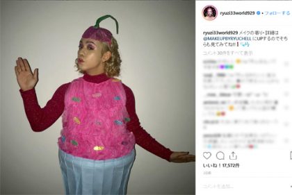 27日に自身のインスタグラムを更新したりゅうちぇるは、「2018 HAPPY HALLOWEEN “IM CUPCAKE BOY”」とコメントを付けて、自らのハロウィン仮装したショットを公開した。