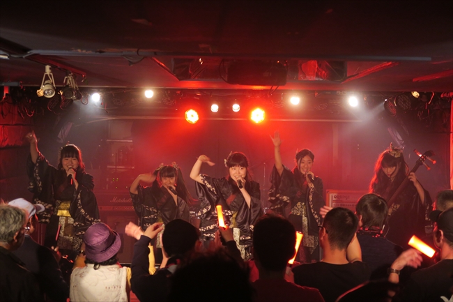民謡ガールズが28日、東京・豊島のmismatch池袋でジャンルを超えた対バンライブ「闘志決戦・本気(マジ)ライブ! ラウンド1」を開催。民謡ガールズの初主催の対バンライブでアイドルグループC;ON、ロックバンドVELDE、GO! THE SKIPと共演。メンバーが「やっぱり迫力が違う!」と語った共演者のステージに負けないくらい、熱いパフォーマンスで観客を魅了した。