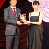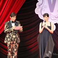 綾瀬は「選んでいただいてとてもうれしく思っています。いい年越しになりそうです」と受賞の喜びを語る。この日は肩が露出した黒のセクシーなドレスで登場し会場を華やかに彩った。
