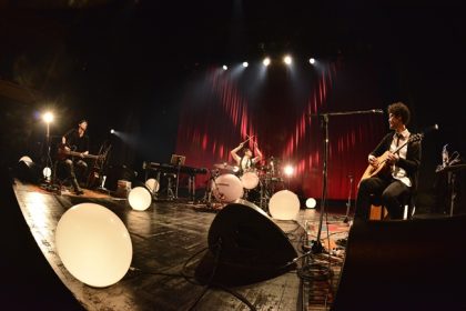 会場が暗転し、ステージ上に設置されたいくつもの球体状の優しい明かりが照らす中、メンバーが登場。かみじょうのドラムセットは鮮やかな青い光を放ち、観客からも感嘆の声が上がった。3人が定位置につき、「黒い森の旅人」でステージをスタート。アコースティック編成らしく3人とも座った状態でバンドの雰囲気とはまた違った空気が満ちた。