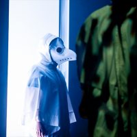 ふたたび舞台は暗転した世界へ。朝を告げるような小鳥の囀り。窓は、たくさんの水滴で埋めつくされていた。ポツポツと滴る水の音。そんな雨の朝の風景を切り取るように響くシャッター音。「ELUDE」を通した音の情景が、夜が明けたことを、夢の中で微睡む4人に伝えていく。