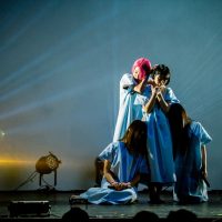 舞台上には、夏の終わりの景色を思い返すように「不思議な風船」を朗読する4人の姿があった。それもまた夢の中の一つの風景。彼女たちが語る少女の物語は、時空を歪ませた中から見えてきた、それぞれの幼少期の姿。それとも…4人は淡々と語り続ける。少女と風船にまつわる不思議な物語を。
