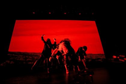 この日の舞台には、前回に観た夕焼け空の背景と、2つの赤いベッドが据えられていた。暗くなった場内。ここは、お馴染み“Solitude Hotel”の6階にある「yume」と名付けられた部屋の中。