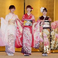 AKB48グループの成人式が14日、東京・神田明神でおこなわれ、NGT48荻野由佳ら44人が振袖姿を披露した。なお、STU48の三島遥香は体調不良のため欠席した。