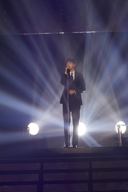 会場が暗転し、スーツ姿でボゴムがステージに登場。ミディアムナンバー「I Like You」で優しい歌声を届けた。