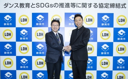 教育現場におけるダンス教育技術の向上とSDGsの推進などを目的として、EXILE USAが代表を務める株式会社dancearthと静岡市が8日、「ダンス教育及びSDGsの推進等に関する協定書」を結んだ。キックオフイベントとして末広中学校の全校生徒を対象にした、SDGsの講話とダンスレッスン「SDGsとDANCEで世界を変えよう!」も同日に実施。(USAのUは実際にはウムラウト記号付き)