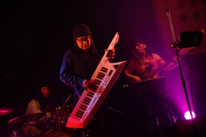 ワンマンということで、サポートバンドに、森田航(Gt)、ゴマアブラ・スパバンドで活動するダディー直樹(Ba)と大塚篤史(Dr)の3人を呼び込み、インストナンバーの「4」を披露。石川のルーツが垣間見れるテクニカルなフュージョンで、グルーヴィな空間を作り上げた。石川のショルダーキーボードによるリードプレイも鮮烈に響き渡った。