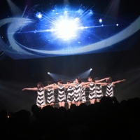 MC明けは「Re-Make」から。細かい振付で10人の動きがシンクロする。ここからは先ほどまでとは違い、クールに魅せる楽曲を並べていった。村上と湊ののびやかな声が存在感を増す。「Hotel Sunset」でグルーヴィなラテン風味を演出してから、映像が映し出される。懐かしいロールプレイングゲームのなかにprediaが入り込んだ、という内容で会場には笑いも生まれていた。