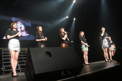 すぐに会場にはアンコールの声があがる。ほどなくしてTシャツに着替えたメンバーがステージに帰還。10人体制最後のアンコールに臨んだ。「壊れた愛の果てに」、「Wake Up」。段々と終わりが近づく。ここでのMCでは、まず卒業する4人が口を開いた。