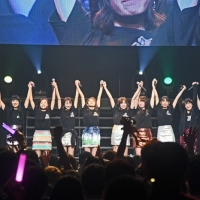 場内のBGMとして流れていた、prediaの「カーテンコール」の音量が大きくなる。楽曲のダイナミックなエンディングに合わせて暗転。そしてSEとともに湊あかね、まえだゆう、桜子、林、岡村、沢口けいこ、水野まい、松本、青山、村上瑠美奈の順番でメンバーが登場。フロアの期待値がピークに達した。