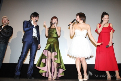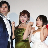 また明日花とは、劇中で青柳さんとセクシーなシーンも披露しているという青柳は、出演に際し前作、前々作を見た感想を「ワン、ツーと全然毛色の違う話でしたが、(自分なりの)やり方を積み上げていけば、作品をまた違うところにつれていけるんじゃないかと思いまして」と振り返ると、明日花はマイクを通さず地声で「えらそうに…」などとボソッとコメント。その声が思いのほか会場に響き、青柳は少し焦った表情で「いや、マイクがのらないと、ガチだから…」などと突っ込みを入れ、爆笑を誘っていた。