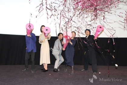 この日の会場となった映画館の規模の大きさに「結構こじんまりやってたので、こんなに大きなところに立たせてもらえるとは」と語る安田を筆頭に、会場の大きさに驚きながらも喜びの表情を見せる4人。