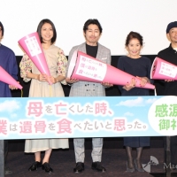 安田顕、倍賞美津子、松下奈緒が23日、都内でおこなわれた、映画『母を亡くした時、僕は遺骨を食べたいと思った。』公開舞台挨拶に登壇。主演を務めた安田は、映画のテーマにまつわるトークを披露する中で、プロモーションで語ったPRコメントが弱いと、妻から指摘を受けていたことを明かした。なおこの日は、メガホンをとった大森立嗣監督も出席した。