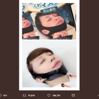 その画像は商品パッケージで、顎に黒のベルトのようなものを固定しながらモデルが眠るショット。西川のコメント通り、確かに西川に似ていおり、ツイッターなどで大きな話題を呼んでいたもの。