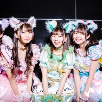 廣川奈々聖 今回は、アルバムのリード曲になっている「くらえ!必殺!!猫パンチ★~私たち戦うにゃこたん【レベル5】~」をイメージした猫戦士風の衣装なんです。この曲、デビューアルバム『The World Standard』の中に収録した、魔法少女の歌「うるとらみらくるくるふぁいなるアルティメットチョコびーむ」の続編ナンバー。あのときは魔法少女の衣装でしたけど、あの雰囲気を活かしつつ、さらに曲も衣装もパワーアップしています。