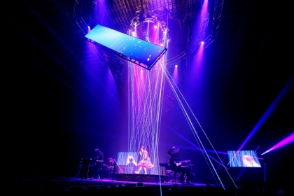 開演時刻になり高揚感を煽るVTRがステージ前方に下がる巨大なスクリーンに投影。その美しい映像は現実世界から引き離してくれるような感覚を与えてくれるオープニングだ。そのスクリーンの幕が落ちると、そこには佇むaikoの姿。届けられたのは「熱」。叙情的な歌声がホールに響き渡る。その歌声に手を合わせ見とれているオーディエンスも見られた。このしっとりとした始まりが適度な緊張感を生み出し、アップチューン「ハナガサイタ」とのコントラストをより一層強くしていた。会場はこの日配られたザイロバンド(※リストバンド型ライト)によるカラフルな光で埋め尽くされ、幻想的な空間を作り上げていた。