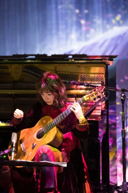 トップバッターを務めたのは、今回のスペシャルゲストで、日本が代表するクラシックギタリストの村治佳織。笑顔でギターを持って椅子に座り、「ムーン・リバー」でステージの幕は開けた。柔らかいタッチで弦を奏でていく村治。楽曲の持つ表情を丁寧に紡ぎ、ガットギターの調べは穏やかに癒しの空間を演出。小気味よいテンポで情景を映し出したジブリ映画『ハウルの動く城』より「人生のメリーゴーランド」、続いては音楽プロデューサーでミュージシャンの伊藤ゴローが参加し「November」、スティングの「Shape Of My Heart」、ラストは「Glashaus」を披露。ガットギターで奏でられる叙情的なメロディは、心地よい風を運んでくるよう。複雑に絡み合う弦のハーモニーに酔いしれる。異国の風を感じさせてくれる演奏でマリ・サムエルセンに繋いだ。