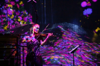 続いてはバイオリニストのマリ・サムエルセン。今年の1月にドイツ・グラモフォンと専属契約した現代で最も独創的かつ訴求力のあるバイオリン奏者だ。1曲目にはバッハの最高傑作の一つ「Chaconne」。伝統的な楽曲にも造詣が深い彼女は、鮮やかな手つきで指板を駆け巡り、メロディに命を吹き込んでいく。人の肉声に近いとも言われているバイオリンの音色は、歌っているかのような揺らぎを与えてくれた。時に儚く、時にエネルギッシュでダイナミックな演奏で感情を音でドラマチックに描いていく。最後はピアニストの大越崇史を招きデュオで「MetamorphosisII」を披露。生命力あふれる空間に、バイオリンとピアノの情緒あふれる音色で満たした。