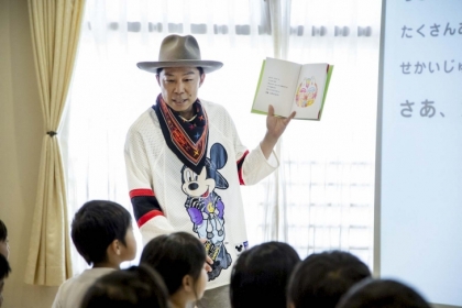 「ダンス」という世界共通の言葉を通して世界中を旅したUSAが、子どもたちへダンスの楽しさを伝えたいという想いで作られた絵本『ダンスアース』(木楽舎、2012年)。本作は絵本に登場する“ラブ"と“ピース"が、ダンスを通して世界を旅していく物語。USA自らダンスを絡ませながら読み聞かせを行うと、子どもたちは夢中になって絵本の世界に入り込む。終盤に差し掛かった「めちゃくちゃダンス」のコーナーで一気に子どもたちの興奮が高まり、最後の決めポーズで子どもたちとの間に一体感が生まれていた。