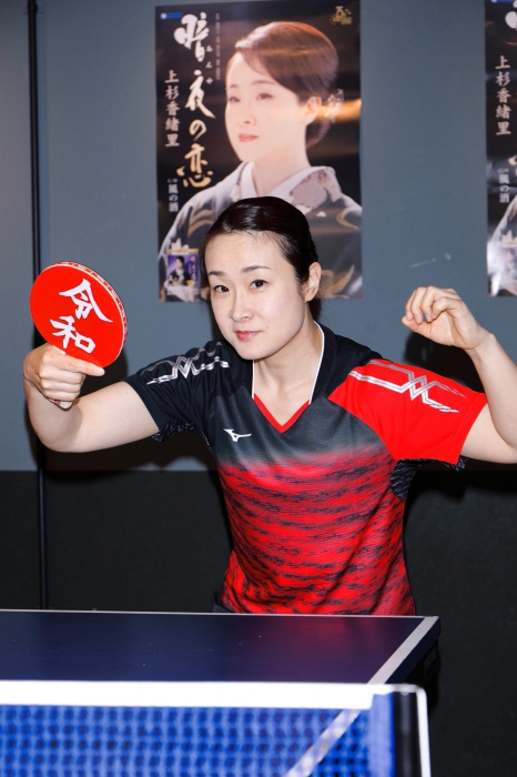 “カメレオン演歌歌手”・上杉香緒里、伊藤美誠選手に扮しヒット祈願 連続ラリーに挑戦