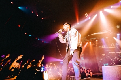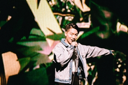 「LOOP」はイントロで歓声が上がる。「チルしていこうか。今日は短いからおもいきり楽しんでいこう」。先ほどまでのハンドマイクでの歌唱ではなく、スタンドにマイクを挿して歌う。メロディアスなサビが心地よい。照明がシンクロして最後のサビへ突入すると、自由なフェイクでフロウする。最後は甘い歌声が残る形でフィニッシュ。