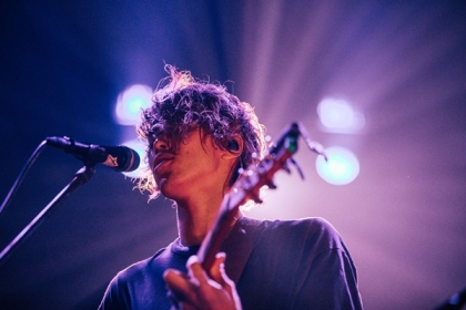 さかしたひかる(vo,gt)と長谷川啓太(dr)のふたりというミニマルな編成。「ベッドルーム・シェイク・サマー」でドミコのステージが始まる。音響的なアプローチでギターの音を重ね、それに対し空間的に叩くドラムス。残響が強いボーカルやスネアの音が会場に響いた。エンディングはビートが細かくなる場面もあったが、展開少な目でチルな雰囲気を作りあげる。