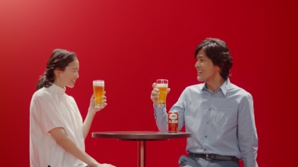 本麒麟「わたしの一番うまい!杏さん」篇には、初共演となる江口と杏の2人が登場。「杏さん、これが新しい本麒麟。」と江口が「本麒麟」をいつものようにすすめすると、杏からは 「おいしいですよね。」という返答が。その返しに「もう飲んだの?」と驚く江口に、笑顔で「この前初めて! 大好きです!」と答える杏。すでに愛用しているとの返事に、江口も思わず笑顔に。 江口から注がれた「本麒麟」をおいしそうに楽しむ杏、それを羨ましそうに「うまそう...」と見つめる江口の表情、最後の2人の幸せそうな様子。
