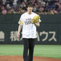 現在放送中の月9ドラマ『ラジエーションハウス~放射線科の診断レポート~』に出演中の鈴木伸之は、白衣姿で球場に登場。マウンドに立つと、白衣を脱いでホークスのユニフォーム姿に。2〜3回、肩を慣らした後にピッチングすると、その豪速球ぶりに球場からは感嘆の声が上がった。