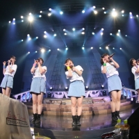 アンコールの声に応えて、SEがド派手に鳴り響く。それに合わせてオーディエンスも「おおきに」と、盛大な掛け声で5人を迎えた。グッズのTシャツとうちわ、堀はトートバッグを首にぶら下げて登場し、カジュアルな出で立ちで「絶唱!なにわで生まれた少女たち(CLUB RAINBOW Remix)」でアンコールはスタート。お祭り騒ぎのような盛り上がりを見せ、さらに「ナナイロダンス」でその盛り上がりをブースト。オーディエンスも隣同士で肩を組み、ビートに合わせ横に揺れ一体感を高めた。
