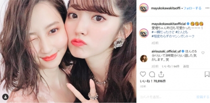 河北麻友子&鈴木愛理「ウインクの破壊力」密着ショット「いいね!」7万件