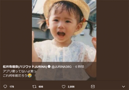 28日に自身のツイッターを更新した松井は、「アプリ使ってないよ笑っ これ何年前だろう」とコメントし、自身の幼少期ショットを公開した。