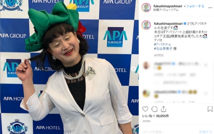 その福島はこの日開催されたイベントにアパホテル社長・元谷芙美子氏に扮して登場。インスタグラムにもその写真と元谷氏との2ショット写真を投稿し、こちらも話題になっている。