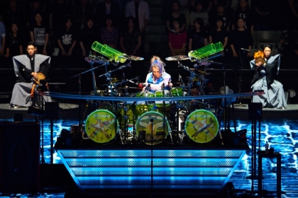 和風の美とわびさび、えもいえぬ日本的な“間”、真矢と和楽器隊の拍の呼吸は、伝統ある日本の聖地を慎ましやかに情熱的に、日本人の心拍を厳かに激しく刻んだ。