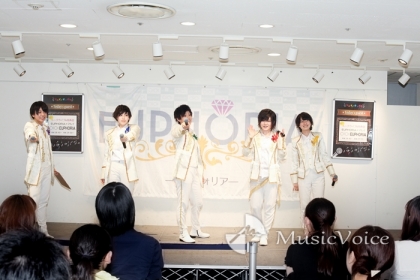 男装アイドルグループのEUPHORIA -ユーフォリア-が、8月のメジャーデビューに向けて、都内で定期イベント『EUPHORIA × マルイ、〇|〇|ユーフォリア(まるまるユーフォリア)』を開催している。17日にはその4回目イベントがおこなわれ、この日は「イントロEUPHORIA」と題してメンバー考案の企画を通してファンとの交流を楽しんだ。
